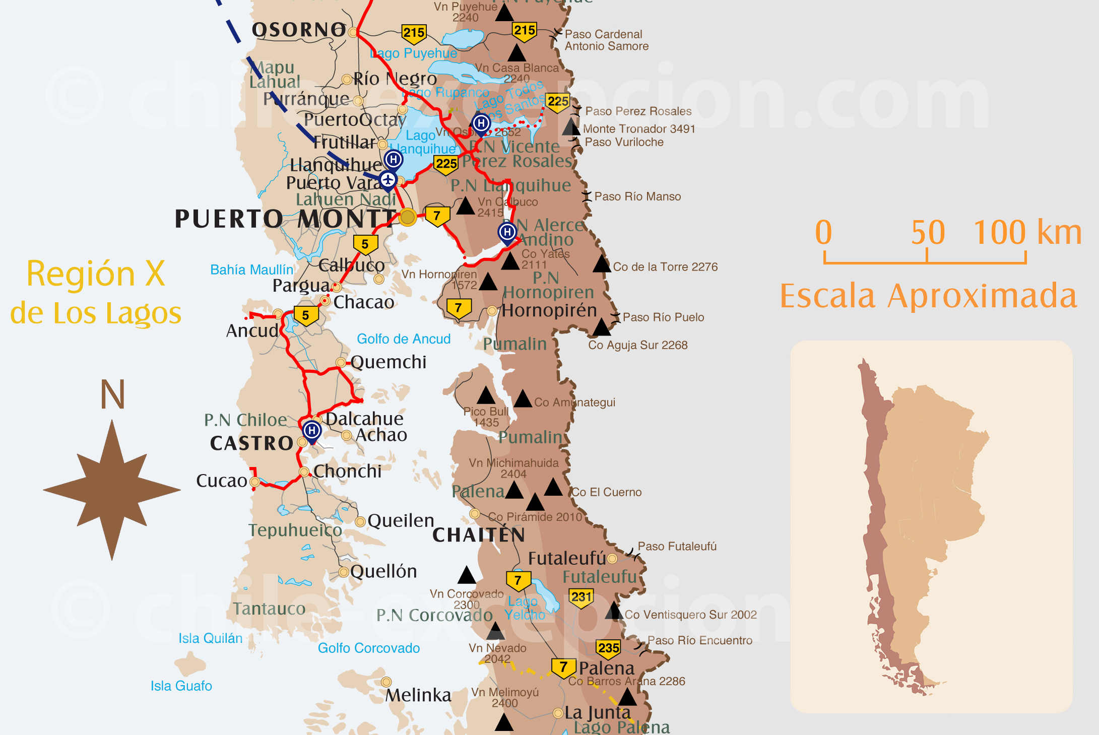 Circuit Chili, Santiago, Malalcahuello, volcan Lonquimay, Icalma, Melipeuco, volcan Llaima, Pucón, volcan Villarrica, volcan Lanin, lac Calafquén, lac Panguipulli, volcan Osorno, Petrohué, estuaire de Reloncavi, Puelo, volcan Yate, îles de Chiloé, Valparaiso.