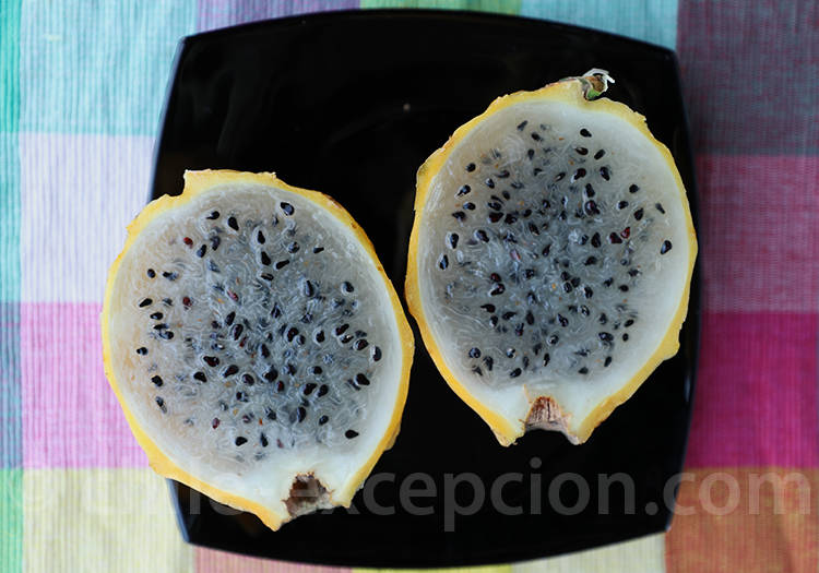 Poussant sur les cactus copao – Eulychnia breviflora -, on retrouve majoritairement ce fruit dans le nord du Chili, entre les régions d’Atacama de Coquimbo. L’espèce est présente dans le parc national Fray Jorge et la réserve nationale Las Chinchillas. Le copao pousse en milieu aride, et est vendu dans de nombreuses échoppes qui sillonnent son territoire. Facile à manger, il suffit de couper une rondelle et de creuser sa chair à la cuillère. C’est un aliment recommandé pour sa teneur en potassium, en minéraux et en vitamine C. Son goût frais et acide peut rappeler celui du kiwi.