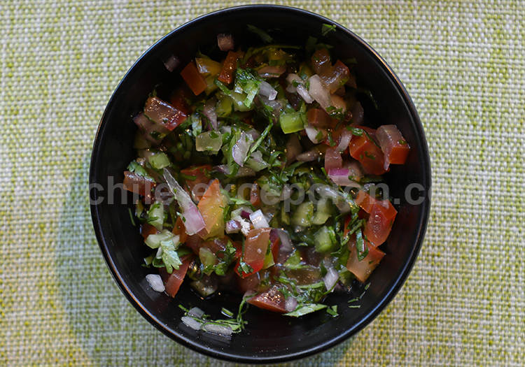 La sauce classique est le pebre, elle accompagne l’asado ou les empanadas : c’est un mélange de coriandre, oignon, ail, piment, jus de citron, vinaigre, huile, et parfois de dés de tomate. Enfin, pour accompagner le tout, un vin chilien est très conseillé, par exemple un cabernet sauvignon ou un merlot. Parmi les plats de viande cuisinée : le bistec a lo pobre, un plat particulièrement riche constitué d’un steak avec oignons, œuf à cheval et frites.