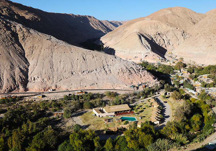 Tout au nord du Chili, dans la région d’Arica, l’hôtel Aruma Codpa bénéficie d’une situation privilégiée : au-dessus des brumes côtières du Pacifique, au-dessous des grands froids des hauts plateaux andins, près de Codpa, un joli village dans un profond canyon, et non loin de beaucoup de sites qui valent le détour: le musée archéologique San Miguel de Azapa, le Salar de Surire, le parc national Lauca avec son splendide lac Chungurá, les volcans, l’Altiplano, les petits villages pittoresques.