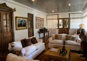 L’ambiance est celle d’une maison de famille, avec ses chambres et salons distribués autour d’une galerie en arcades et d’un patio-jardin. Les boiseries originales ont été couvertes d’une patine café-crème, la maison est agrémentée de vieux meubles et tableaux dénichés chez les antiquaires.