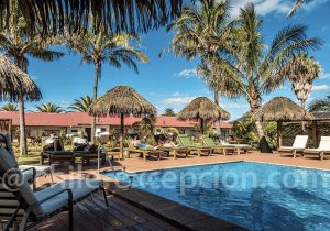 L’hôtel Taha Tai se trouve à 500 mètres du centre d’Hanga Roa, à 5 minutes de route de l’aéroport Mataveri, et surtout, à quelques pas seulement de l’océan Pacifique. C’est d’ailleurs cette dernière caractéristique qui lui a donné son nom : « Taha » signifie « à côté », et « Tai » signifie « marée ». Il compte 40 chambres, toutes équipées, ainsi que divers espaces communs : piscine, bar, restaurant, salon lounge… Plusieurs services sont mis en place pour que le séjour des voyageurs soit le plus agréable possible : internet gratuit, service de laverie, parking gratuit. Son point fort : la vue sur l’océan depuis son restaurant.