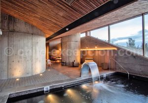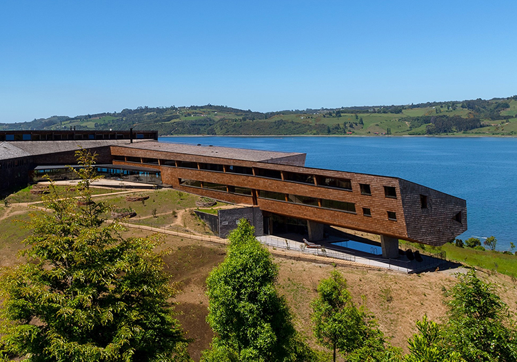 L’hôtel Refugia Chiloé est situé sur la rive de la Péninsule de Rilán, à 18 km de Castro sur l’archipel de Chiloé. Cette structure avant-gardiste est nichée sur une colline surplombant la mer, dans un espace de 10 hectares qui mêle prairies, forêts et plage avec harmonie. Elle se fond dans le paysage et dans la culture chilote avec son architecture simple mais luxueuse, cette dernière alliant parfaitement la modernité du design contemporain avec le côté plus traditionnel de l’île de Chiloé. Notamment grâce à l’utilisation de bois précieux.