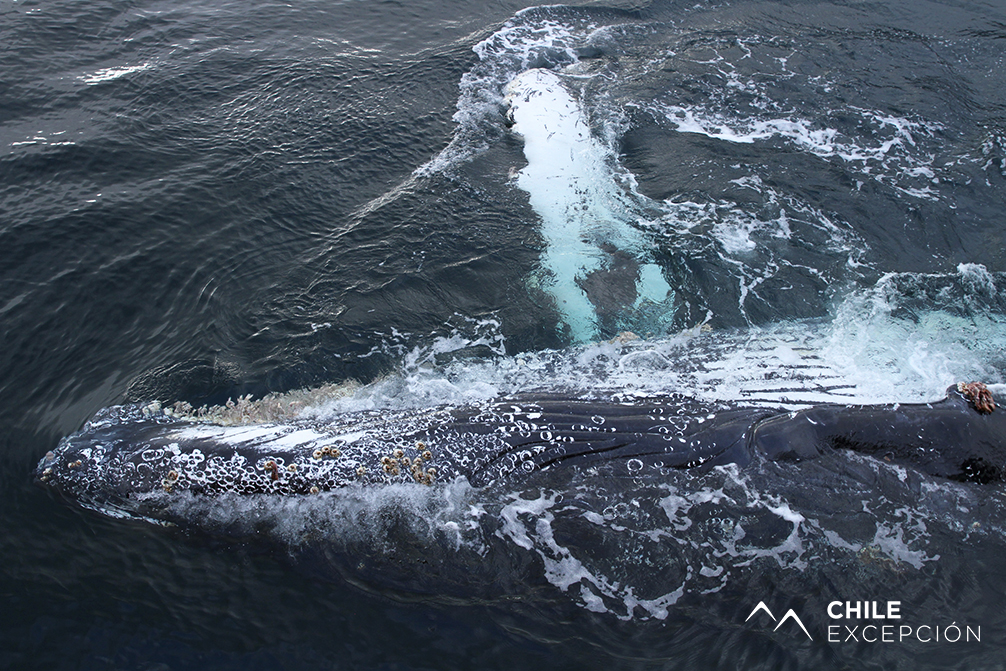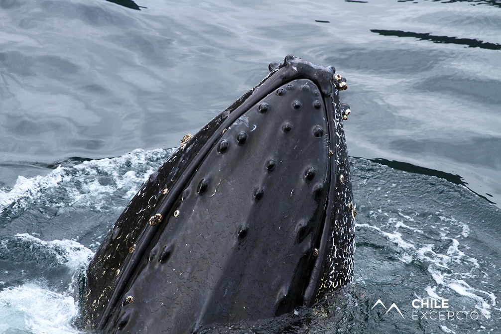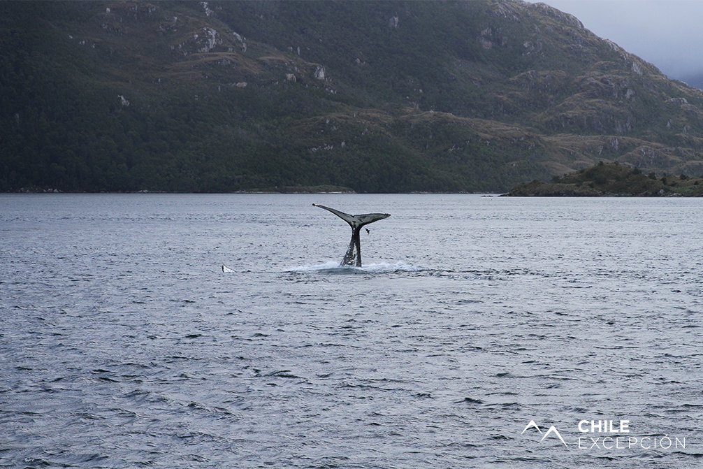 Après un bon repas à bord du bateau, nous mettons le cap sur la Isla Carlos III, cœur du Parque Marino Francisco Coloane. Nous nous trouvons alors au milieu d’une faune maritime exceptionnelle : dauphins, lions de mer, cormorans, manchots de Magellan. Mais le plus impressionnant reste l’incroyable spectacle des baleines à bosse qui se promènent sans crainte autour du navire. Celles-ci ont la particularité, chose unique chez les baleines, d’être capable de sauter de tout leur corps au-dessus de l’eau. Leur ballet est magnifique, comme irréel. Leur taille, autour de 14 mètres de longueur en moyenne, est étonnante ; on peut alors observer la caractéristique tâche blanche sur leur ventre. Leur nom de baleine à bosse leur vient de la manière dont elles se courbent lorsqu’elles replongent dans les profondeurs. Herman Melville, le célèbre auteur de Moby Dick, écrit à propos de cette espèce, “la plus joueuse et la plus joyeuse de toutes les baleines, brassant l’eau et faisant de l’écume plus que n’importe quelle autre”. Il faut tendre l’oreille pour entendre le chant charmeur des baleines, maitresses de ces lieux regorgeant de vie aquatique.
