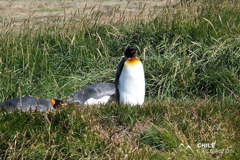 Nous arrivons après une grosse heure de route à l’Estancia San Clemente. Ses terres ne sont pas celles d’une estancia comme les autres. Une colonie d’une trentaine de manchots royaux s’y est installée depuis 2010. Devant la rareté de l’espèce, les propriétaires ont choisi de faire de l’endroit une réserve, un parc uniquement dédié à cette population si particulière et si rare, le Parque Pinguino Rey. En effet, les manchots royaux sont la deuxième espèce de manchots la plus grande de la planète, après les manchots empereurs, qui vivent exclusivement en Antarctique. Ils mesurent entre 85 et 95 cm de hauteur adulte, et pèsent de 12 à 14 kg en moyenne. Ces oiseaux magnifiques se caractérisent par les taches jaunes vif en forme de cuillère de chaque coté de leur tête. Ils ont, comme les autres manchots, cette forme aérodynamique et ce plumage imperméable qui leur permet de plonger jusqu’à 70 m de profondeur dans la mer.