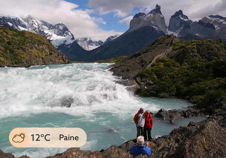 En Patagonie des lacs, vous profitez d’un climat plus frais. Les nombreuses averses causées par les sommets andins qui retiennent les nuages du Pacifique laissent rapidement place à de belles éclaircies. Ne manquez pas la route des églises en bois et l’île de Chiloé, le temps plus sec et chaud de décembre rend leur visite beaucoup plus agréable que le reste de l’année. Admirez la nature luxuriante qui vous entoure et profitez de l’été pour tester de nombreuses excursions. Rendez-vous au parc Torres del Paine qui bénéficie d’un micro climat par l’influence de la mer.