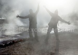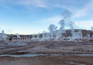 Puis nous avons pu admirer les magnifiques paysages du désert d’ Atacama la vallée Arco Iris, la vallée de la lune , les lagunes Escondidas, Miscanti , Miniques ( extraordinaires ) sans oublier le Salar de Talar et la fabuleuse lagune Tuyajto, les geysers du Tatio au petit matin ( il y fait très frais ) et les thermes de Puritama pour se délasser .