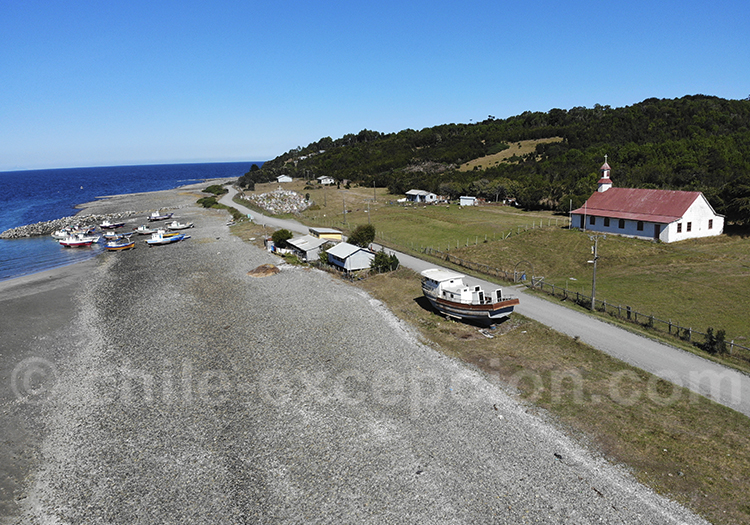 La seconde option pour rejoindre Hornopirén depuis Contao, consiste à prendre la petite route n°875 qui longe la côte et passe par plusieurs villages de pêcheurs. La Poza, Caleta Aulen, Tentelhue, Rolecha, Hualaihué… sont autant de villages côtiers aux pittoresques maisons de bois, et aux petites églises typiques qui rappellent celles de l’île de Chiloé. On surnomme d’ailleurs cette zone le « Chiloé continental », en référence à l’île qui se trouve au large de cette côte, qui l’a influencée par sa culture et son architecture. Environ 10 minutes et 8 kilomètres après avoir quitté Hualaihué, la route côtière rejoint la route 7, qui continue vers le sud et Hornopirén, situé 24 kilomètres plus loin.