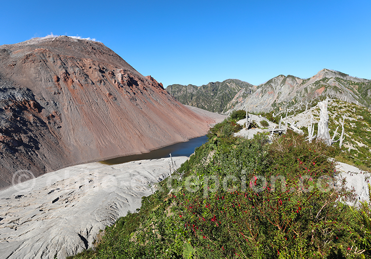 Ce volcan possède une caldera de 2,5 kilomètres par 4 kilomètres. Au fur et à mesure des éruptions, le centre du volcan s’affaisse ce qui forme une dépression, la caldera, où de nouveaux dômes se reconstruisent en son cœur. En 2008, après près de trois siècles endormi, le volcan entre en éruption. Durant un an, il est particulièrement actif, générant des perturbations dans les flux aériens et obligeant les autorités à faire évacuer de façon définitive la zone dans un rayon de 30 kilomètres. Aujourd’hui, un dôme principal au centre de la caldera continue d’émettre des fumeroles. Il atteint actuellement 1122 mètres d’altitude et la caldera que l’on peut atteindre en randonnée en 1 heure 30 se trouve à 744 mètres.