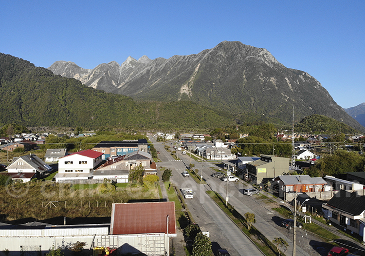 Situé à 240 kilomètres de Puerto Montt via Carretera Austral/Route 7, le village de Chaitén a été fondé en 1933 dans le but de peupler le sud du territoire chilien. Cette petite ville compte aujourd’hui plus de 6000 habitants. Son nom vient de chain-chaitun qui signifie «filtrer en panier» en mapudungun, la langue des Mapuches. La ville a été très affectée après l’éruption du volcan Chaitén en 2008 : en effet, les pluies qui ont suivi l’événement tellurique ont charrié tout le matériel rejeté par le volcan et la rivière Blanco a alors inondé une partie de la ville, engloutissant les constructions. Il n’y eu aucune victime à déclarer. Les habitants ont été évacués par mer et par voie terrestre.