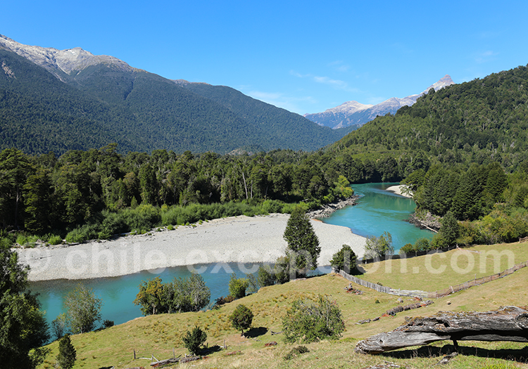 La source du Río Frío – Rivière froide, se trouve à l’est du parc national Corcovado. Son cours accompagne la Route Australe sur quelques kilomètres. Ses eaux turquoise bordent le long des monts du Massif Nevado, au sud du lac Yelcho, entre les villages de Villa Santa Lucia et de Villa Vanguardia. À Villa Santa Lucia, le río Burritos plonge dans les eaux du rio Frío qui se jette à son tour au niveau de Villa Vanguardia dans le río Palena. La Carretera Australe traverse le lit de la rivière grâce à un pont, l’occasion d’effectuer une pause pour profiter du panorama environnant.
