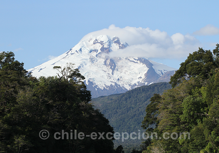 Le sommet enneigé du volcan Michinmahuida, haut de 2460 m d’altitude, contraste dans ce paysage de végétation luxuriante. C’est d’ailleurs de là que vient son nom. En effet en mapudungun, «minche» signifie «en dessus des montagnes» et «mahuida» signifie «forêt». Celui-ci est situé à une vingtaine de kilomètres à l’est du volcan Chaitén. Il s’agit d’un volcan à caldera dont le cratère est couvert de glace et quelques langues glacières descendent sur ses flancs. La dernière éruption aurait eu lieu en 1835 et le flot de lave aurait atteint Punta Chana, sur la côte. Un sentier de 11 kilomètres part de la route 7 à environ 29 kilomètres au nord de Chaitén et conduit jusqu’au pied du volcan. De là, il est possible d’atteindre les glaciers du sommet. L’ascension du volcan est d’un niveau de haute montagne, elle s’adresse donc aux plus expérimentés accompagnés d’un guide.