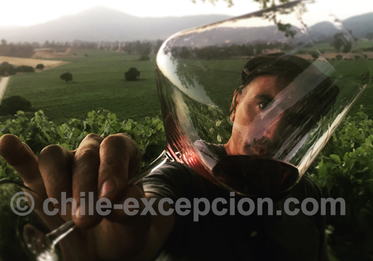 • Visage dans le vignoble chilien