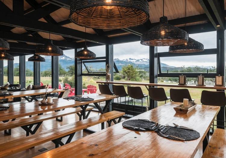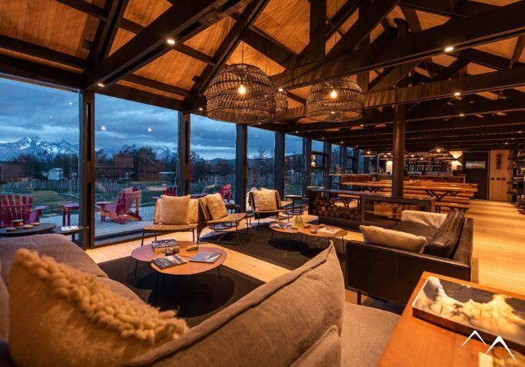 Les hôtes peuvent profiter de divers espaces communs, incluant un salon convivial organisé autour d’une cheminée, pour profiter des jeux de société ou de la large bibliothèque mise à disposition. Au bar vous trouverez des boissons locales et internationales que vous pourrez même déguster au bord de la rivière. Le restaurant propose des plats typiques de la “Cuisine Fueguina”, élaborés avec des produits locaux. L’hôtel dispose également d’un vaste jardin où les visiteurs peuvent se détendre et profiter de la nature environnante.