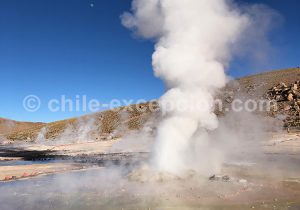 Journée du 21 juin (San Pedro: Tatio) : nous sommes arrivés à 6h30 et sommes restés jusqu’à environ 10h30. Après 8h30, tous les touristes sont repartis et c’est une bonne idée de rester pour profiter du lieu dans le calme et d’arriver de toutes façons un peu avant le lever du soleil pour voir le spectacle des geysers. Il est possible de se baigner dans la piscine (chaude grâce aux geysers) au Tatio.