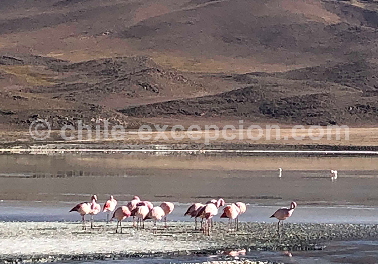 Journée du 20 juin (San Pedro: Salar de Talar – Chaxa) : nous n’avons malheureusement pas pu faire une bonne partie du programme à cause de la neige sur la route, mais la route vaut la peine pour ses décors minéraux et l’observation des flamands roses dans le salar de San Pedro.
